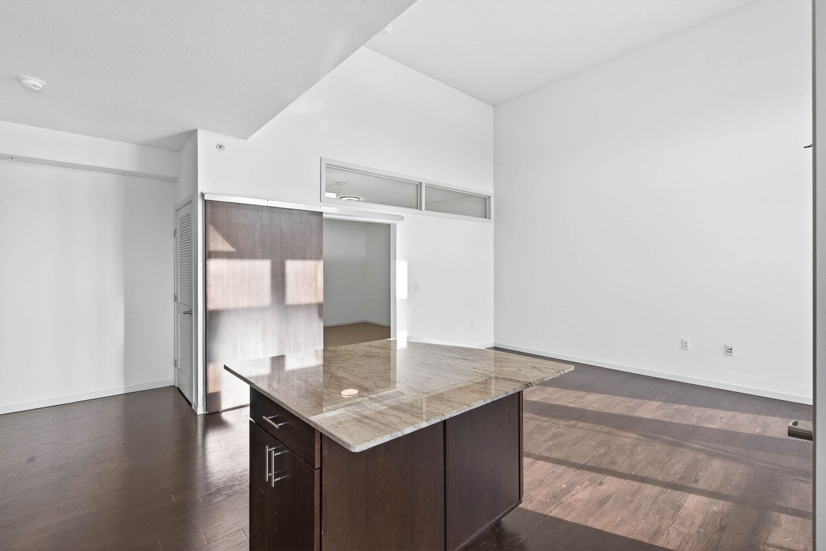 Warm and inviting espresso luxury vinyl plank flooring flows seamlessly throughout, enhancing the refined aesthetic. Thoughtfully placed upgraded LED lighting casts a soft, welcoming glow, while the southern exposure bathes the space in beautiful natural light with the added windows from the lofty vaulted ceiling. The spacious living area extends effortlessly to a private south facing balcony, offering a serene setting to enjoy a morning coffee or unwind in the evening.