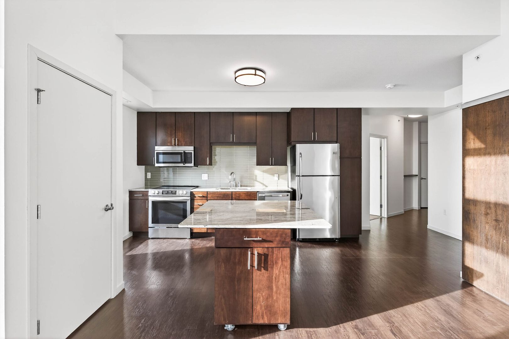 Step into timeless elegance with this beautifully designed apartment, where classic charm meets modern convenience. The heart of the home is the sophisticated gourmet kitchen, featuring rich espresso cabinetry, a glass-tile backsplash, gleaming granite countertops, and a spacious kitchen island—perfect for preparing meals and gathering with loved ones. The premium upgraded kitchen appliances complement the space, adding both function and style.