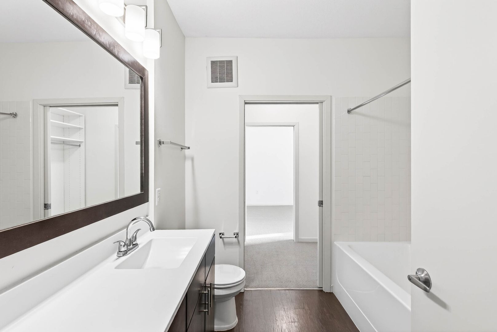 Designed with both comfort and sophistication in mind, this residence also features a custom-built bedroom closet, providing ample storage, and a stackable washer and dryer for everyday ease. Every detail has been curated to create a home that exudes timeless beauty and effortless living. Schedule a tour of the Soho Signature Vaulted Flat today to experience this classic retreat firsthand!